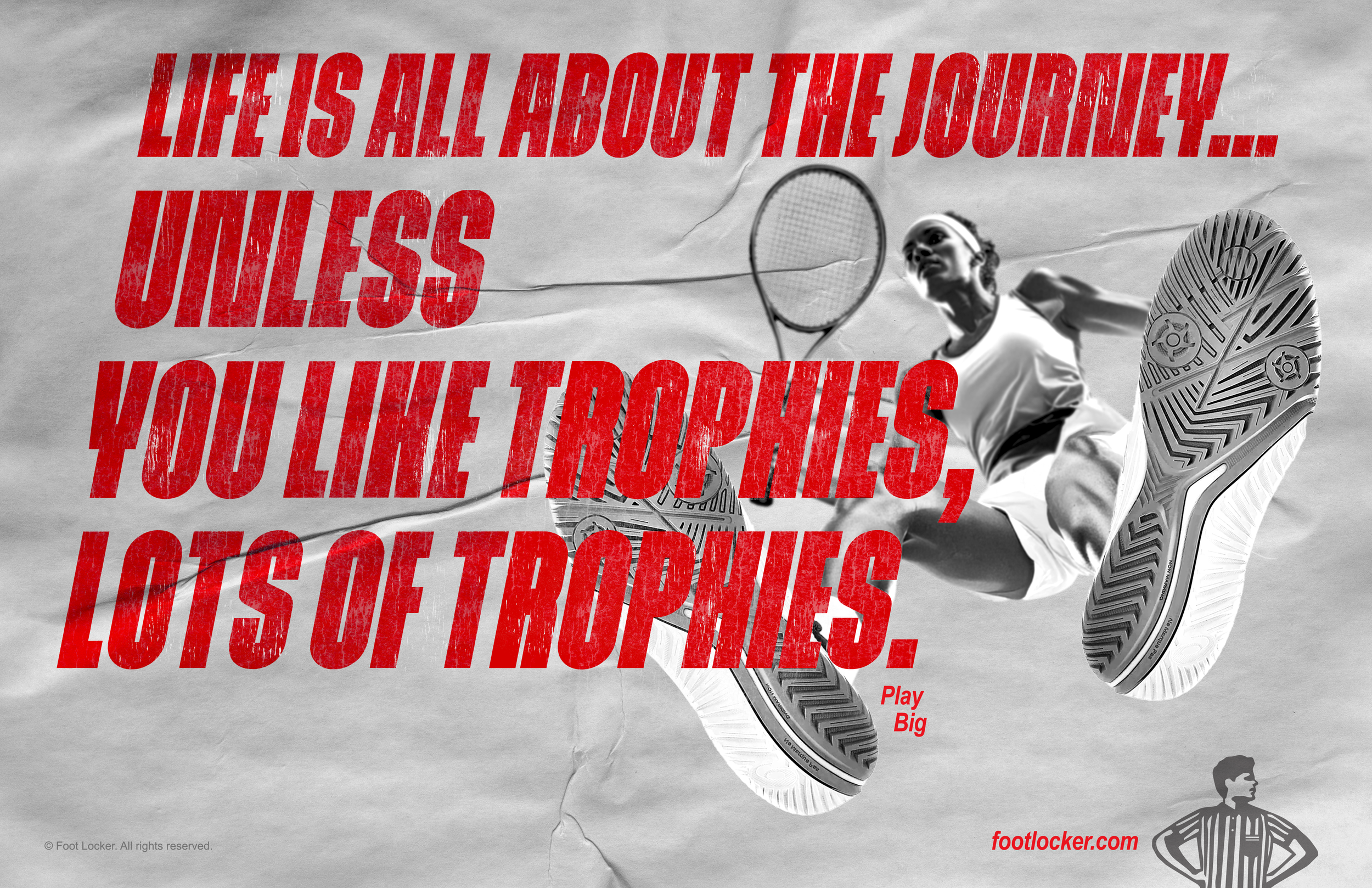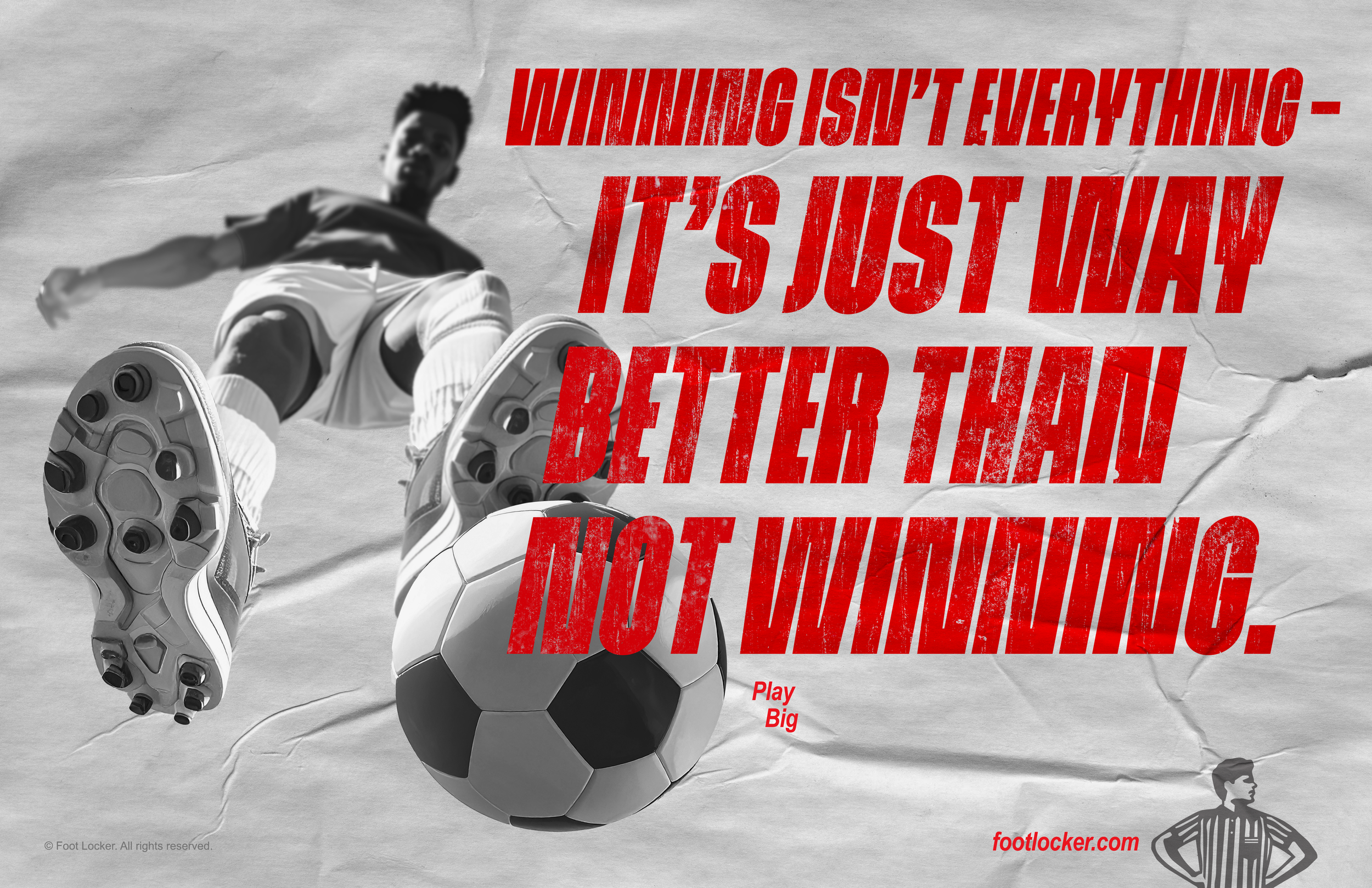 Winners are constantly focused on moving forward, getting things done, taking action and improving. Always striving to be the best they can be, they aren't afraid of hard work. These insights lead to Foot Locker’s PLAY BIG campaign. A wink to the aspirations of those who go-all-out for a “W”.
